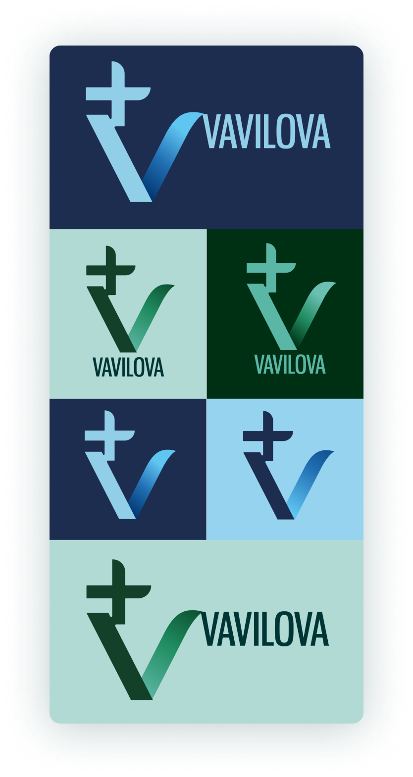 Here is our vision how the logo and brand elements of the 《VAVILOVA》 medical center could look like