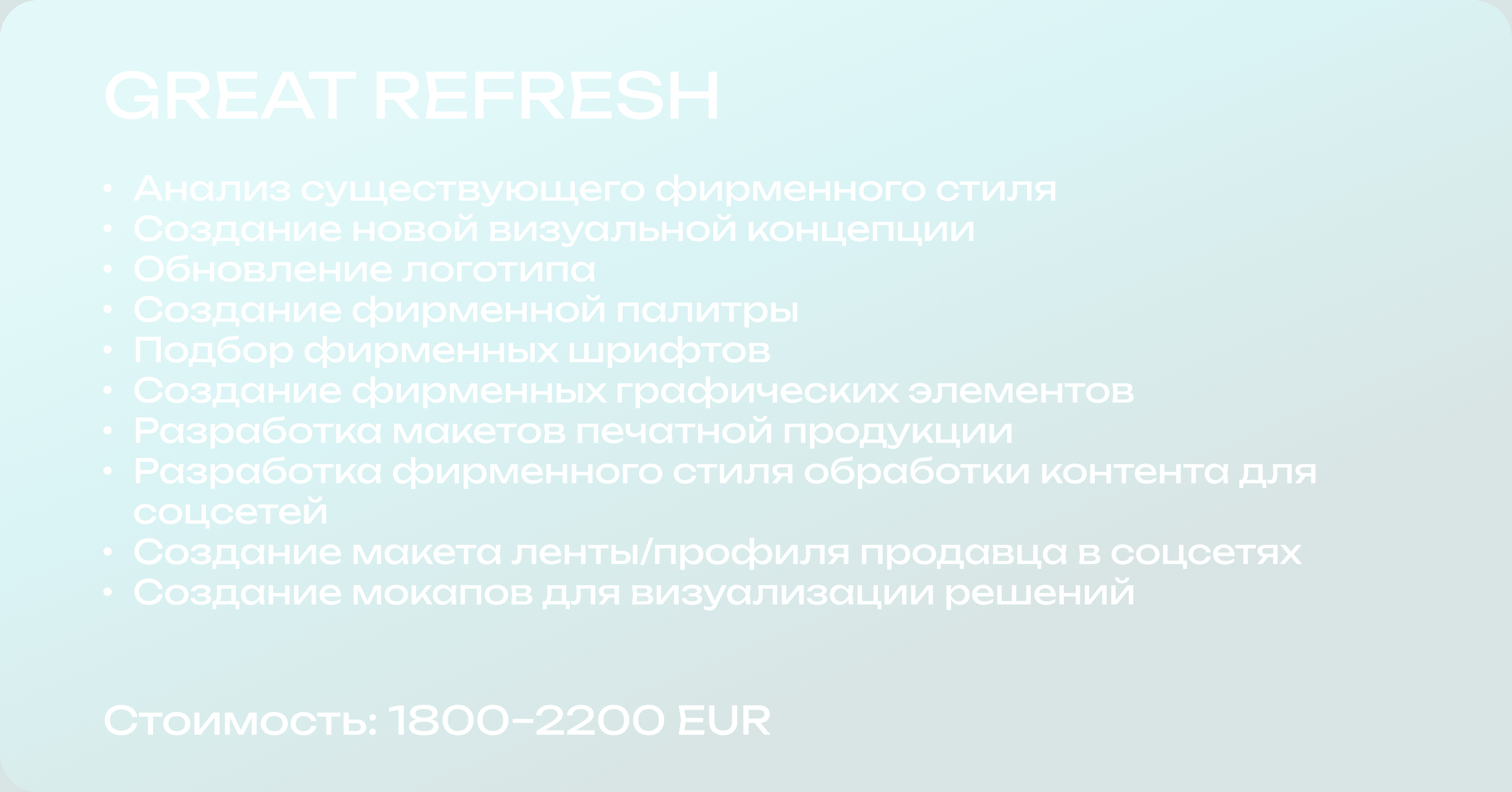 Мы создадим для вас современный узнаваемый дизайн, который выделит вас на фоне конкурентов и привлечёт целевых клиентов.